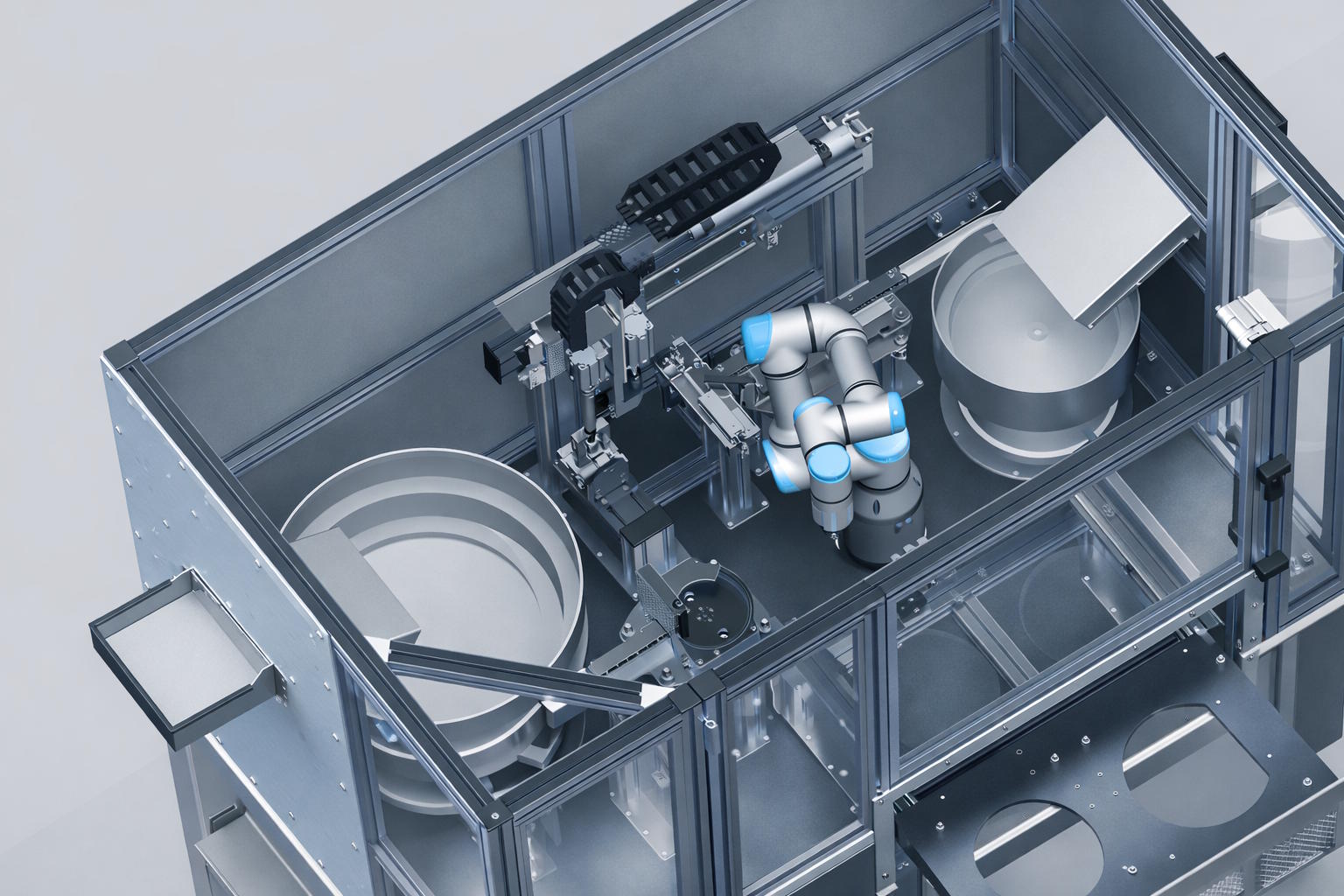 Unter Cobots und Tischzellen verstehen wir kompakte Automatisierungslösungen, die speziell für kleine und mittelständische Unternehmen gedacht sind, platzsparend, schnell integrierbar und passgenau auf den jeweiligen Prozess zugeschnitten.