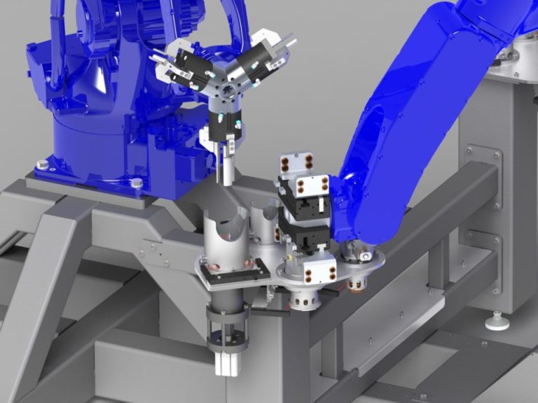 Im Bereich Industrierobotik realisieren wir neben klassischen Zellen auch Mehrroboterzellen (Multi-Robot-Systeme), in denen zwei oder mehr Roboter einen Montageprozess arbeitsteilig oder synchronisiert abarbeiten.